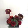 Centerpiece arrangement decorated with fresh flowers, berries and greenery
