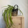 Chlorophytum comosum, is known as Spider Plant because of its spider-like look! We love this plant as it is super easy-going and creates these small spiders at the end of each hanging stem that can be given to friends that want to propagate and grow their own plant. Since most spider plants are variegated, the solid green color makes them unique, interesting, and harder to find.